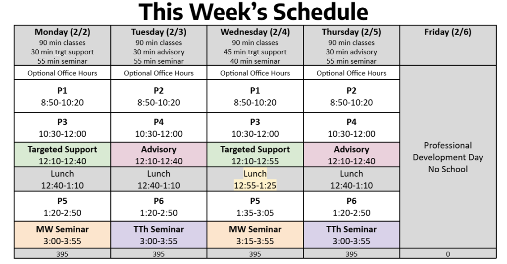 - Friday, 2/6 Professional Development Day – No School for Students