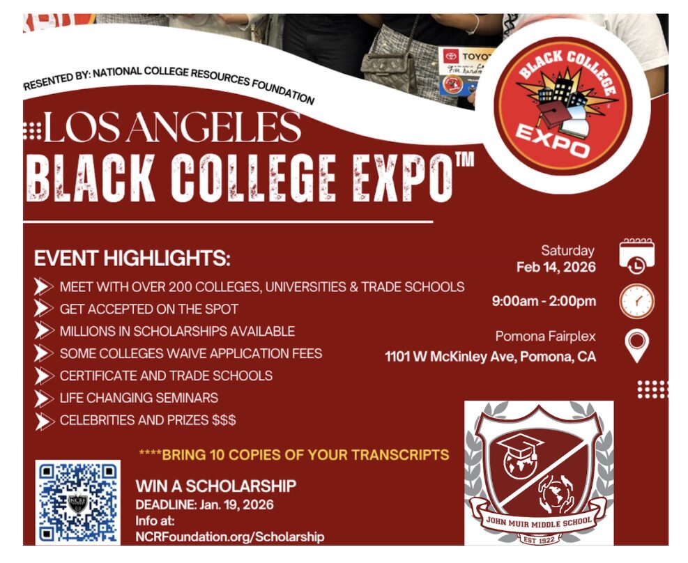 On Saturday, February 14th, DVS will take students to the Los Angeles Black College Expo held at Pomona Fairplex. This field trip is open to ALL DVS students! The Expo will host a variety of colleges: public, private, independent, military, and trade schools. Some colleges will accept seniors for admission, waive college application fees and give away scholarships on the spot! DVS will pay the admission fee as well as provide transportation. We will depart from 201 N. Douglas promptly at 9:00am and return at 1:45pm. Students must bring their own lunch or bring money to purchase food.